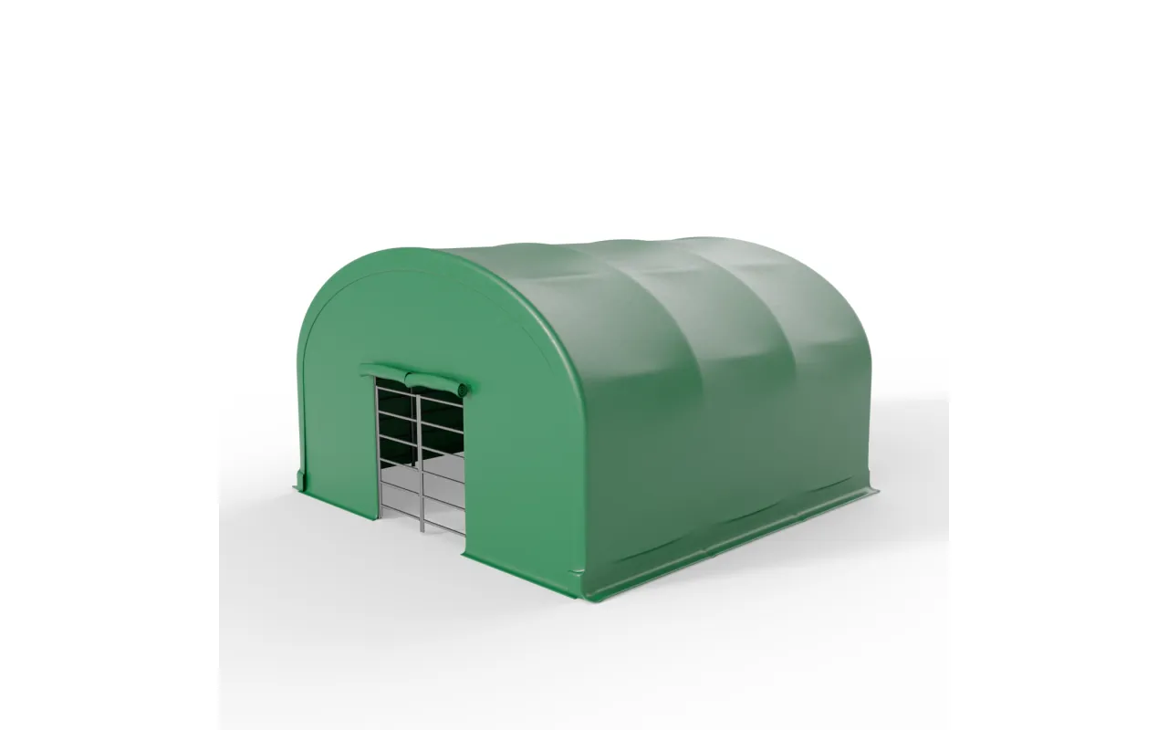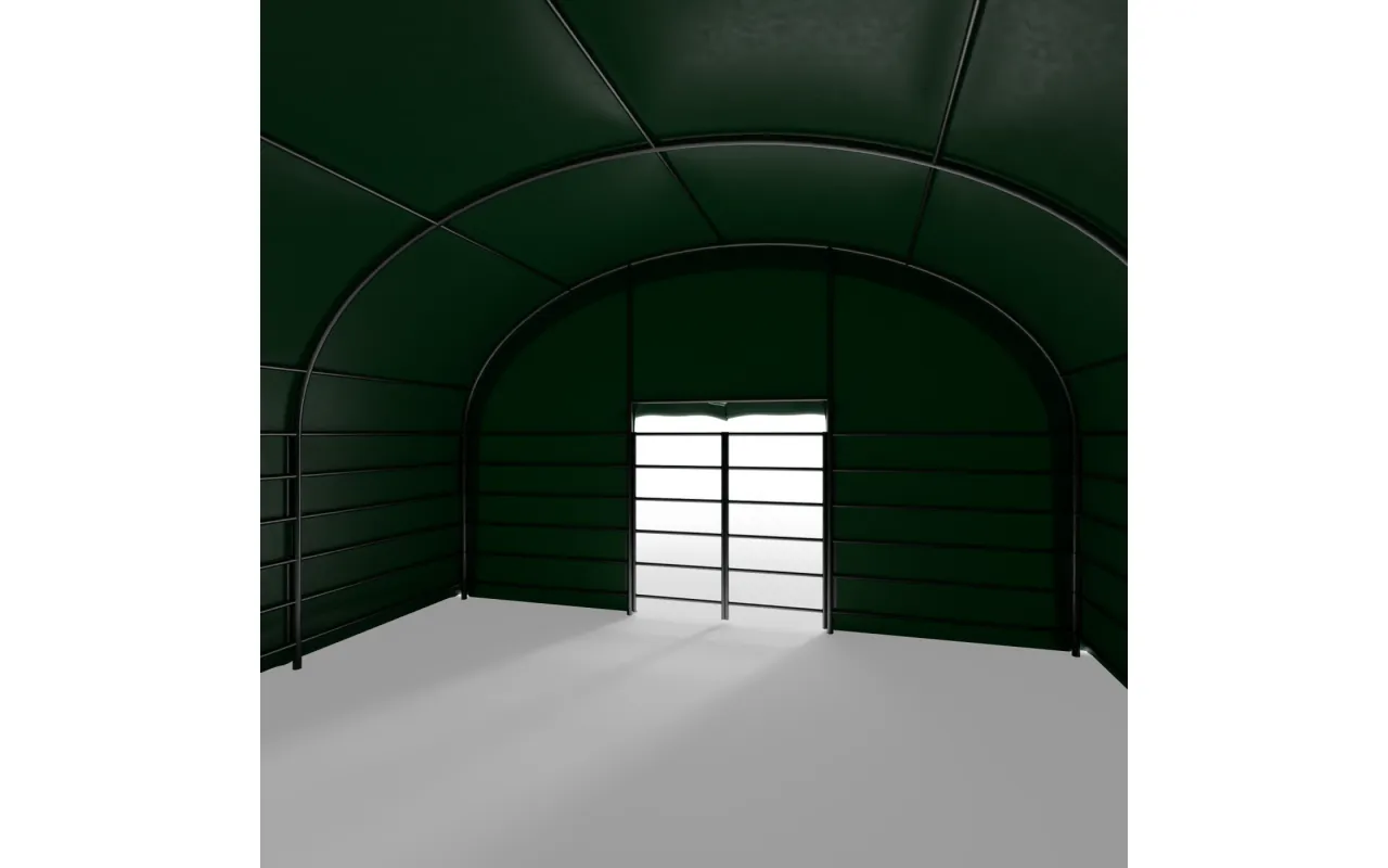 Vorderwand für Tiergehege 6x6m PVC 750g/m² ist ein fertiges Modul aus PVC-Plane, das den Eingang zur Bucht schließt und den Einfluss von Wind, Niederschlägen und Kälte auf den Bereich verringert, in dem sich die Tiere aufhalten. Auf dem vorhandenen Rahmen der Gazelt-Konstruktion montiert, ohne zusätzliche tragende Elemente, bildet die Frontwand eine natürliche Ergänzung der Bucht – sie ist keine eigenständige Halle, sondern ein passgenauer Systembaustein. Dank Vorderwand für Tiergehege 6x6m PVC 750g/m² bleibt der Innenbereich trockener, besser vor Zugluft geschützt und leichter sauber zu halten, was den Komfort von Pferden, Rindern, Schafen, Ziegen, Alpakas und Lamas erhöht – sowohl in landwirtschaftlichen Betrieben als auch in agrotouristischen Anlagen und saisonalen Haltungsbereichen.