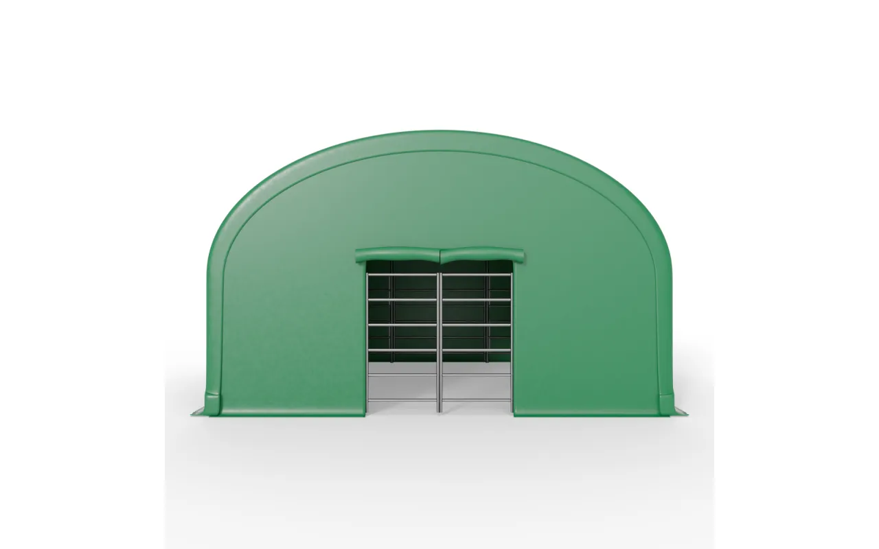 Vorderwand für Tiergehege 6x6m PVC 750g/m² wird für ein konkretes Buchtmodell von Gazelt ausgelegt – unter Berücksichtigung der Bogen-Geometrie, der Anordnung der Befestigungspunkte und einer Eingangsöffnung, die zu Frontgittern und -toren passt. Dadurch liegt die Wand gleichmäßig an der Konstruktion an, erfordert keine Anpassungen und sorgt für einen besser abgedichteten Frontabschluss. Die Plane wird direkt am Rahmen der Bucht befestigt, was Montage und Demontage vereinfacht; in Perioden mit hohen Temperaturen kann sie teilweise aufgerollt werden, um die Belüftung zu verbessern. Vorderwand für Tiergehege 6x6m PVC 750g/m² ist in Varianten mit unterschiedlicher Grammatur erhältlich (z. B. 750 g/m² oder 900 g/m²), sodass sich die Lösung an die Nutzungsintensität anpassen lässt – von leichteren, saisonalen Buchten bis hin zu ganzjährig genutzten Plätzen auf Farmen und in größeren Betrieben.