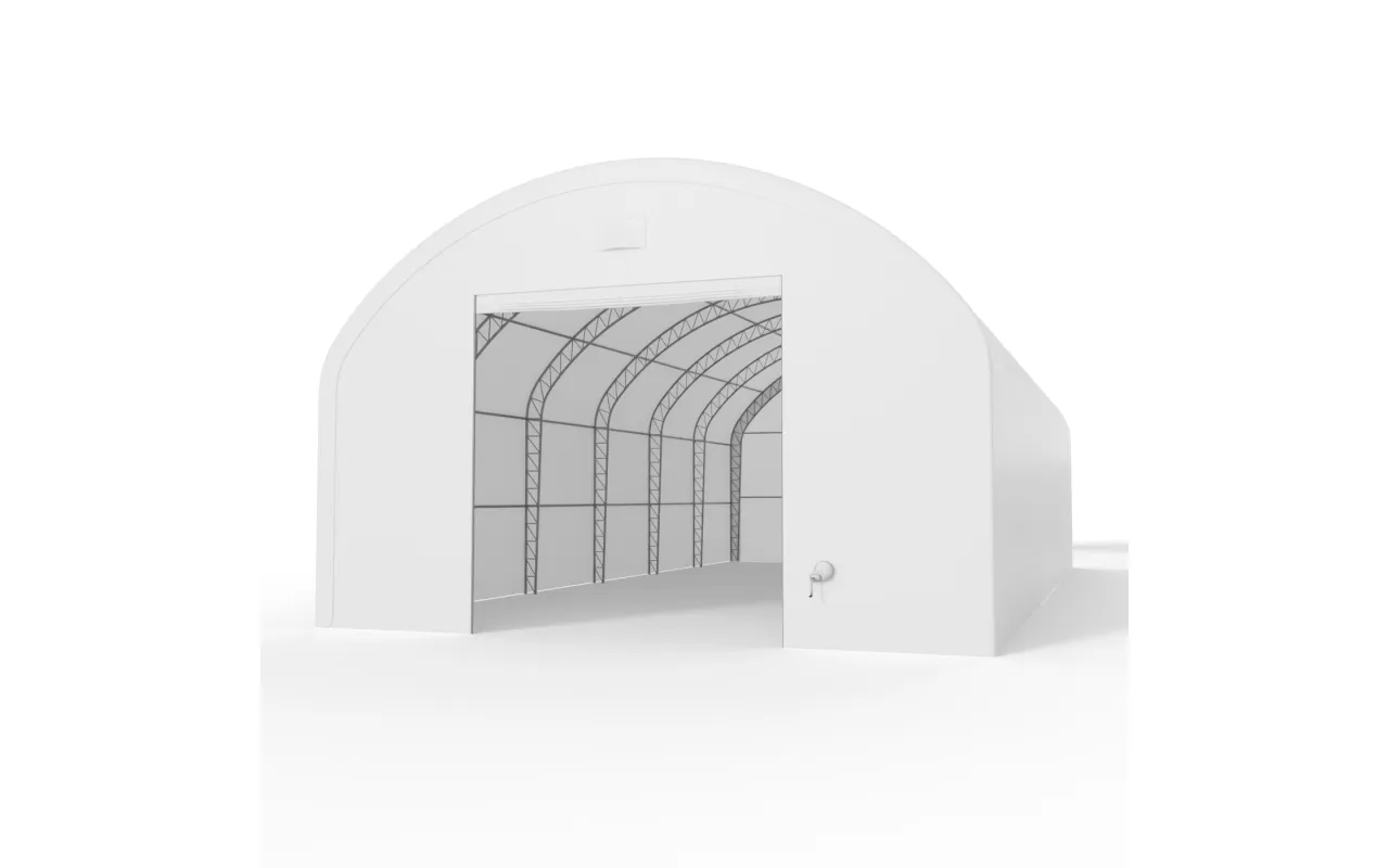 Bogenhalle mit senkrechten Seitenwänden 12,2x18,3 m PVC 900 g/m² ist eine funktionale Arbeitshalle für Lagerung, das Abstellen von Maschinen sowie für operative Arbeitsabläufe. Die Kombination aus bogenförmiger Dachgeometrie und senkrechten Seitenwänden ermöglicht es, die volle Breite der Konstruktion zu nutzen, ohne ungenutzte Randbereiche an den Seiten. Durch die regelmäßige Form des Innenraums lassen sich Regale, Geräte und Arbeitsplätze leichter anordnen, und der Raum funktioniert wie ein klassisches Lager. Das ist eine Lösung für Landwirtschaft, Logistik und Industrie – überall dort, wo die Halle den Arbeitsalltag tatsächlich unterstützen soll.