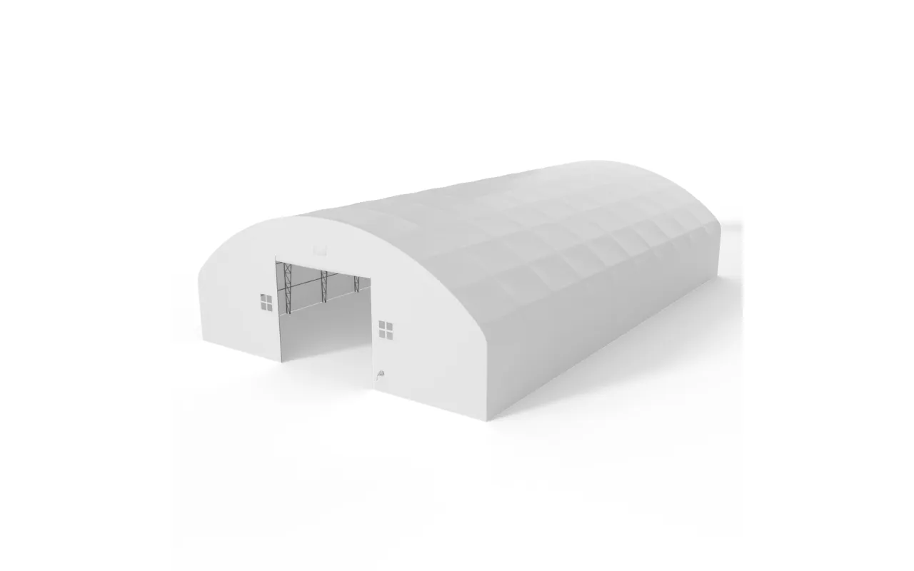 Bogenhalle mit senkrechten Seitenwänden 18,3x18,3 m PVC 750 g/m² ist eine funktionale Arbeitshalle für Lagerung, das Abstellen von Maschinen sowie für operative Arbeitsabläufe. Die Kombination aus bogenförmiger Dachgeometrie und senkrechten Seitenwänden ermöglicht es, die volle Breite der Konstruktion zu nutzen, ohne ungenutzte Randbereiche an den Seiten. Durch die regelmäßige Form des Innenraums lassen sich Regale, Geräte und Arbeitsplätze leichter anordnen, und der Raum funktioniert wie ein klassisches Lager. Das ist eine Lösung für Landwirtschaft, Logistik und Industrie – überall dort, wo die Halle den Arbeitsalltag tatsächlich unterstützen soll.