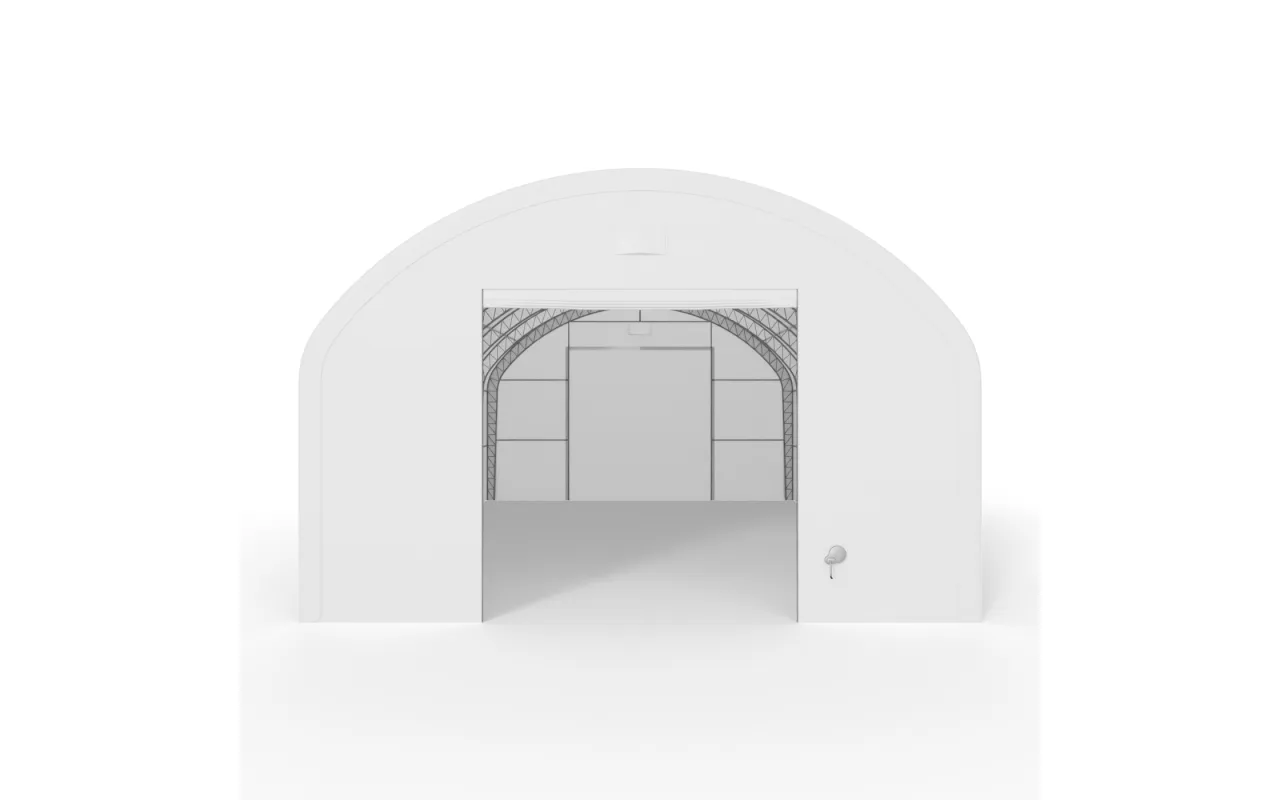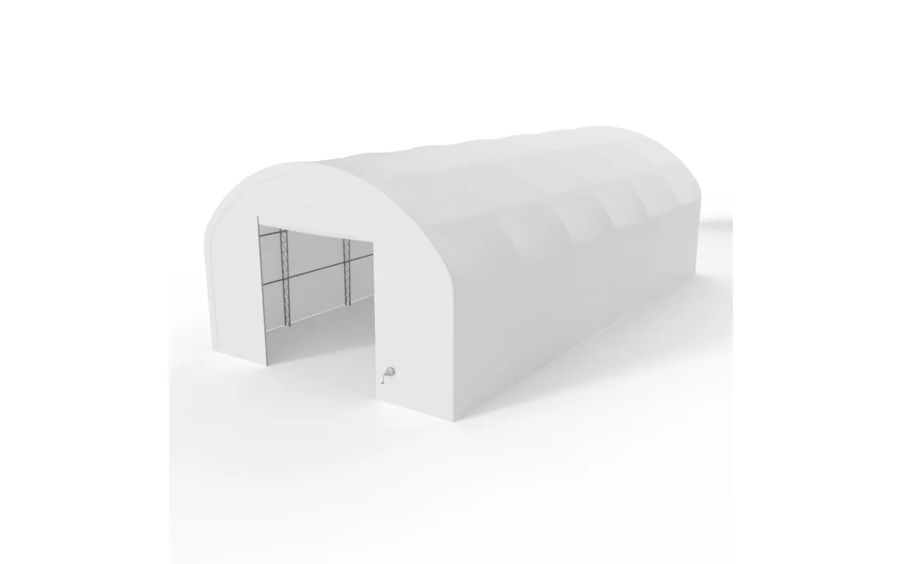 Bogenhalle mit senkrechten Seitenwänden 9,15x9,15 m PVC 900 g/m² ist eine funktionale Arbeitshalle für Lagerung, das Abstellen von Maschinen sowie für operative Arbeitsabläufe. Die Kombination aus bogenförmiger Dachgeometrie und senkrechten Seitenwänden ermöglicht es, die volle Breite der Konstruktion zu nutzen, ohne ungenutzte Randbereiche an den Seiten. Durch die regelmäßige Form des Innenraums lassen sich Regale, Geräte und Arbeitsplätze leichter anordnen, und der Raum funktioniert wie ein klassisches Lager. Das ist eine Lösung für Landwirtschaft, Logistik und Industrie – überall dort, wo die Halle den Arbeitsalltag tatsächlich unterstützen soll.