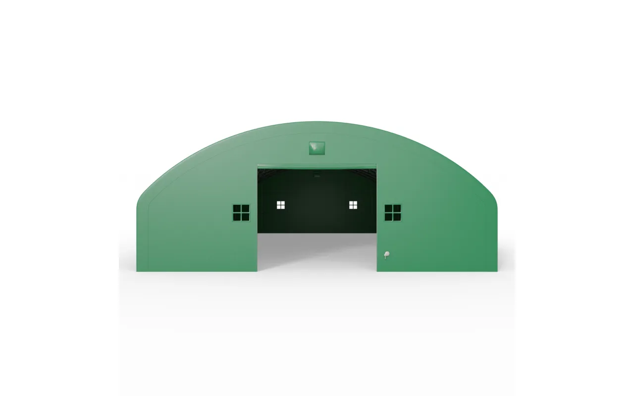 Bogenhalle mit senkrechten Seitenwänden 18,3x24,4 m PVC 750 g/m² in grüner Ausführung ist eine funktionale Arbeitshalle für Lagerung, das Abstellen von Maschinen sowie für operative Arbeitsabläufe. Die Kombination aus bogenförmiger Dachgeometrie und senkrechten Seitenwänden ermöglicht es, die volle Breite der Konstruktion zu nutzen, ohne ungenutzte Randbereiche an den Seiten. Durch die regelmäßige Form des Innenraums lassen sich Regale, Geräte und Arbeitsplätze leichter anordnen, und der Raum funktioniert wie ein klassisches Lager. Das ist eine Lösung für Landwirtschaft, Logistik und Industrie – überall dort, wo die Halle den Arbeitsalltag tatsächlich unterstützen soll.