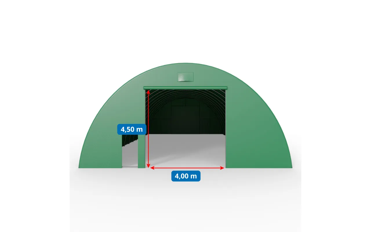 Konsequent funktional und optisch passend zur Umgebung: Die grüne 12,2×24 m Halle eignet sich ideal für Betriebe, die eine große, geschlossene Lagerfläche benötigen. Die PVC-Plane 750 g/m² schützt Lagergut vor Feuchtigkeit und Wind, die Konstruktion aus ovalen Stahlprofilen steht für dauerhafte Stabilität. Lieferung als Komplettlösung mit Seil-Rolltor vorne und geschlossener Rückwand. Empfohlene Montage auf Fundamentfüßen für zusätzliche Standfestigkeit. Fragen Sie unsere Beratung zur Verfügbarkeit und zur optimalen Auslegung für Ihren Betrieb an.