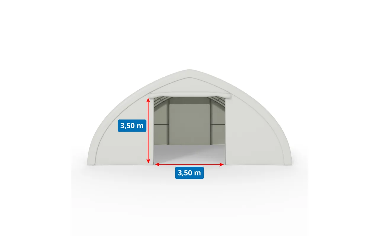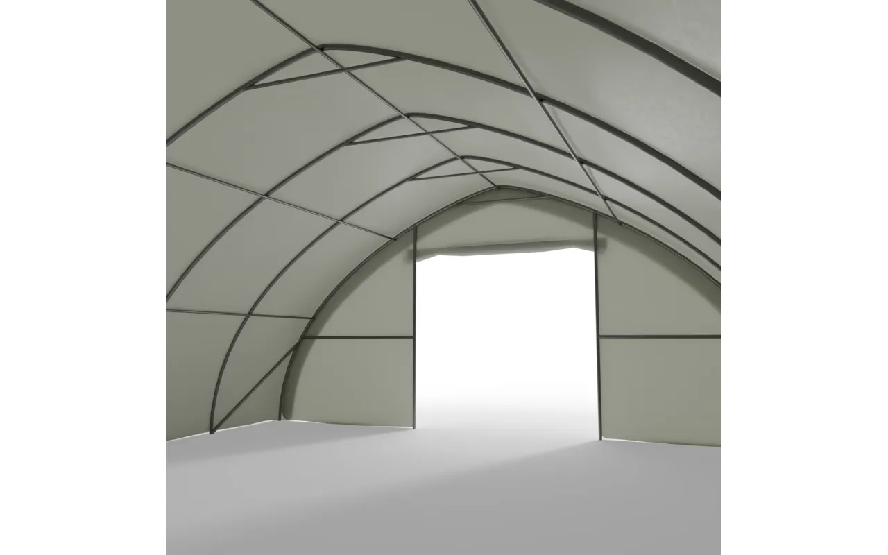 Die 9,76×20 m mit Abdeckung PVC 900 g/m² ist für Anwender, die bei der Haltbarkeit keine Kompromisse machen. Das verstärkte, abriebfeste Material und die Konstruktion aus ovalen Profilen bieten sicheren Schutz auch unter anspruchsvollen Bedingungen. Ausführung mit geschlossener Rückwand sowie Front mit manuell per Seilzug zu öffnendem Rolltor. Geeignet als ganzjähriges Lager oder Unterstand für Geräte. Fragen offen? Unsere Berater unterstützen Sie kurzfristig.