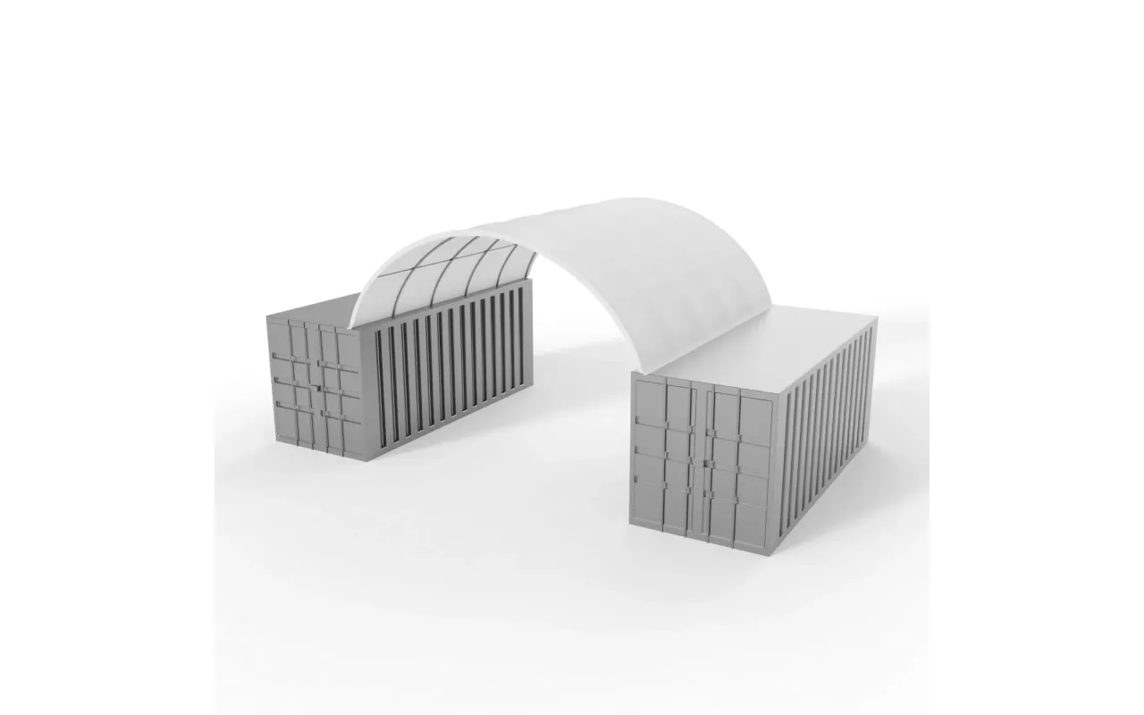 - Es handelt sich um eine Art gewölbte Überdachung, die zwischen Containern verwendet wird.