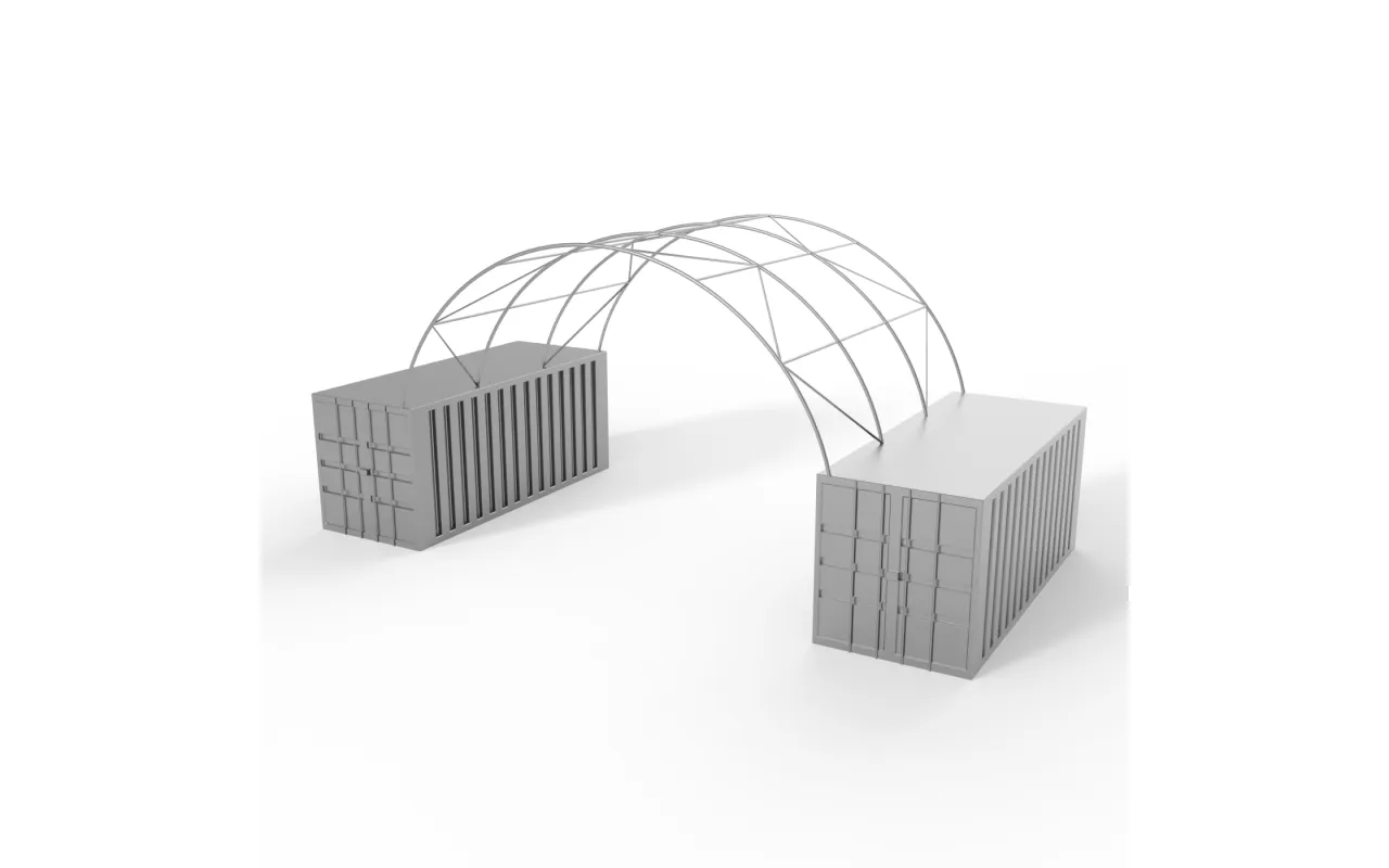 - Es handelt sich um eine Art gewölbte Überdachung, die zwischen Containern verwendet wird.