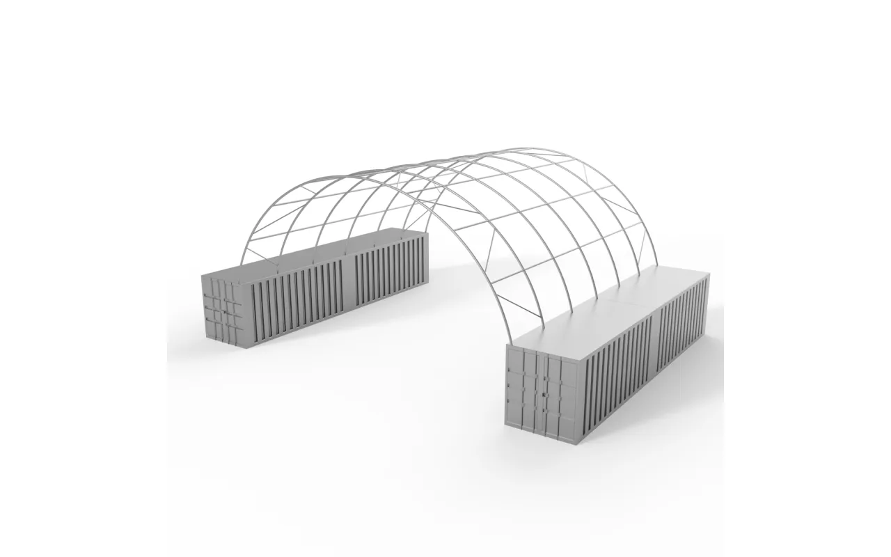 - Es handelt sich um eine Art gewölbte Überdachung, die zwischen Containern verwendet wird.