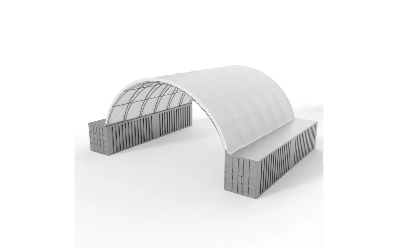 Container Überdachung verstärkt 12x12 m ist eine vielseitige Überdachung zur Sicherung der Fläche zwischen Containern. Ideal für Logistikunternehmen, Lager sowie Baustellen – mit Schutz vor Regen, Schnee und intensiver Sonneneinstrahlung. Die verstärkt Container Überdachung 12x12 m aus strapazierfähigem PVC-Material ist für langfristige Nutzung ausgelegt und unterstützt hohe Betriebssicherheit. Überdachungen aus PVC werden individuell an den Bedarf angepasst; möglich ist auch ein rundum geschlossener Bereich mit Einfahrtstor oder Eingangstür. Durch die einfache Montage lässt sich die Konstruktion schnell umsetzen. Kontaktieren Sie uns für die passende Ausführung.