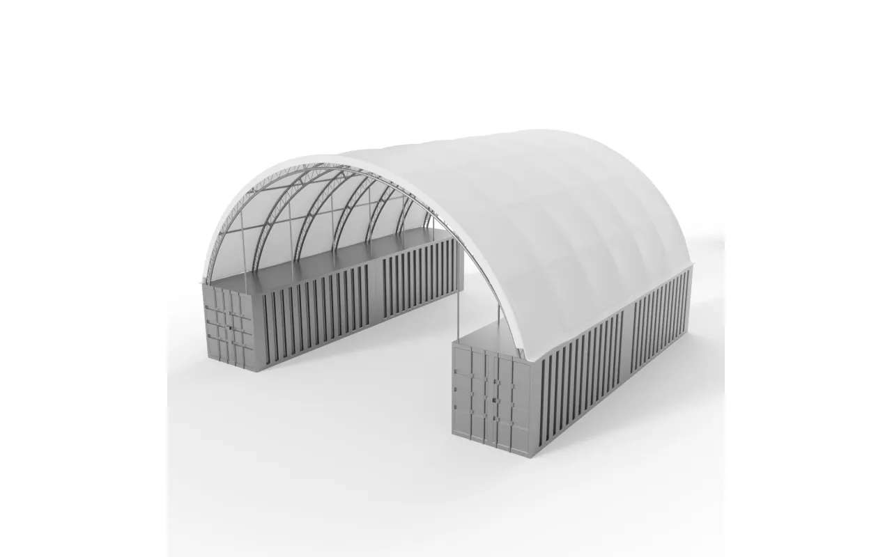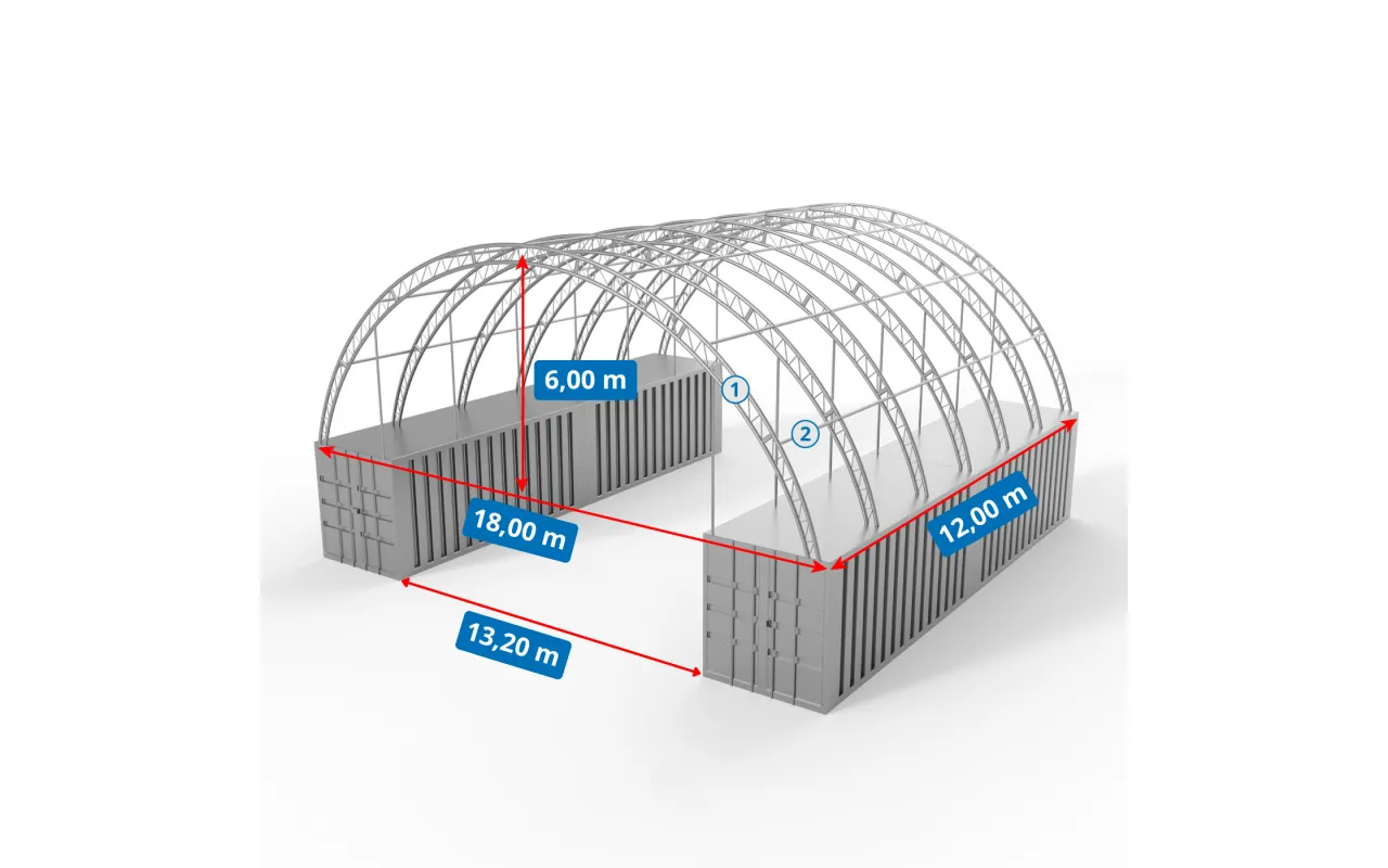 Container Überdachung XL 18x12 m verstärkt bietet als vergrößerte Ausführung zusätzliche Nutzfläche und hohe Flexibilität. Die XL-Version der Container Überdachung ist ideal für Logistikunternehmen, Lager und Baustellen und schützt zuverlässig vor Regen, Schnee und starker Sonneneinstrahlung. verstärkt Container Überdachung XL 18x12 m besteht aus strapazierfähigem PVC-Material und ist für langlebigen Einsatz ausgelegt. PVC-Containerüberdachungen werden individuell angepasst: optional rundum geschlossen, mit Einfahrtstor oder Eingangstür. Schnelle Montage und einfache Standortwechsel. Jetzt Angebot anfragen.