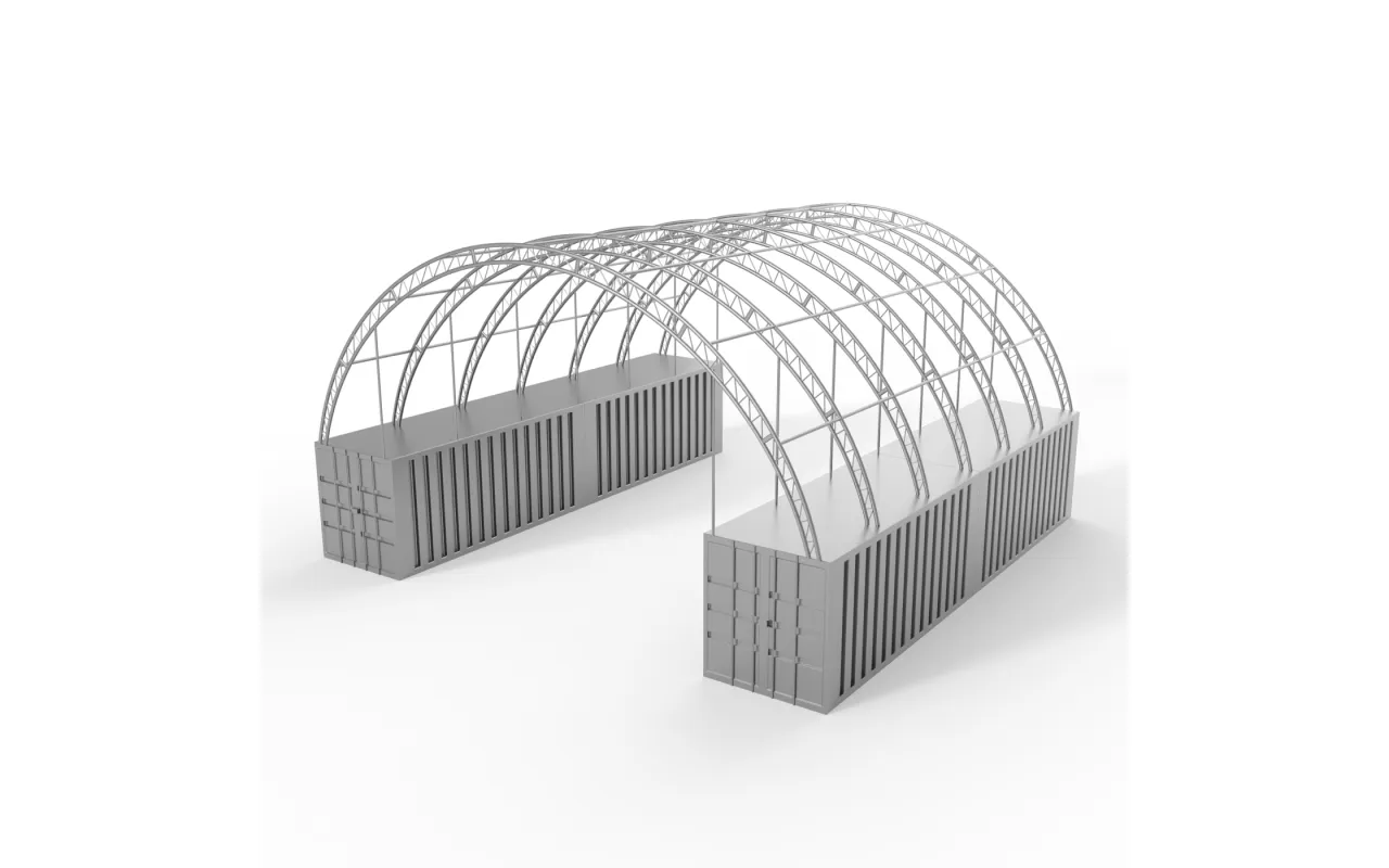 - Es handelt sich um eine Art gewölbte Überdachung, die zwischen Containern verwendet wird.
