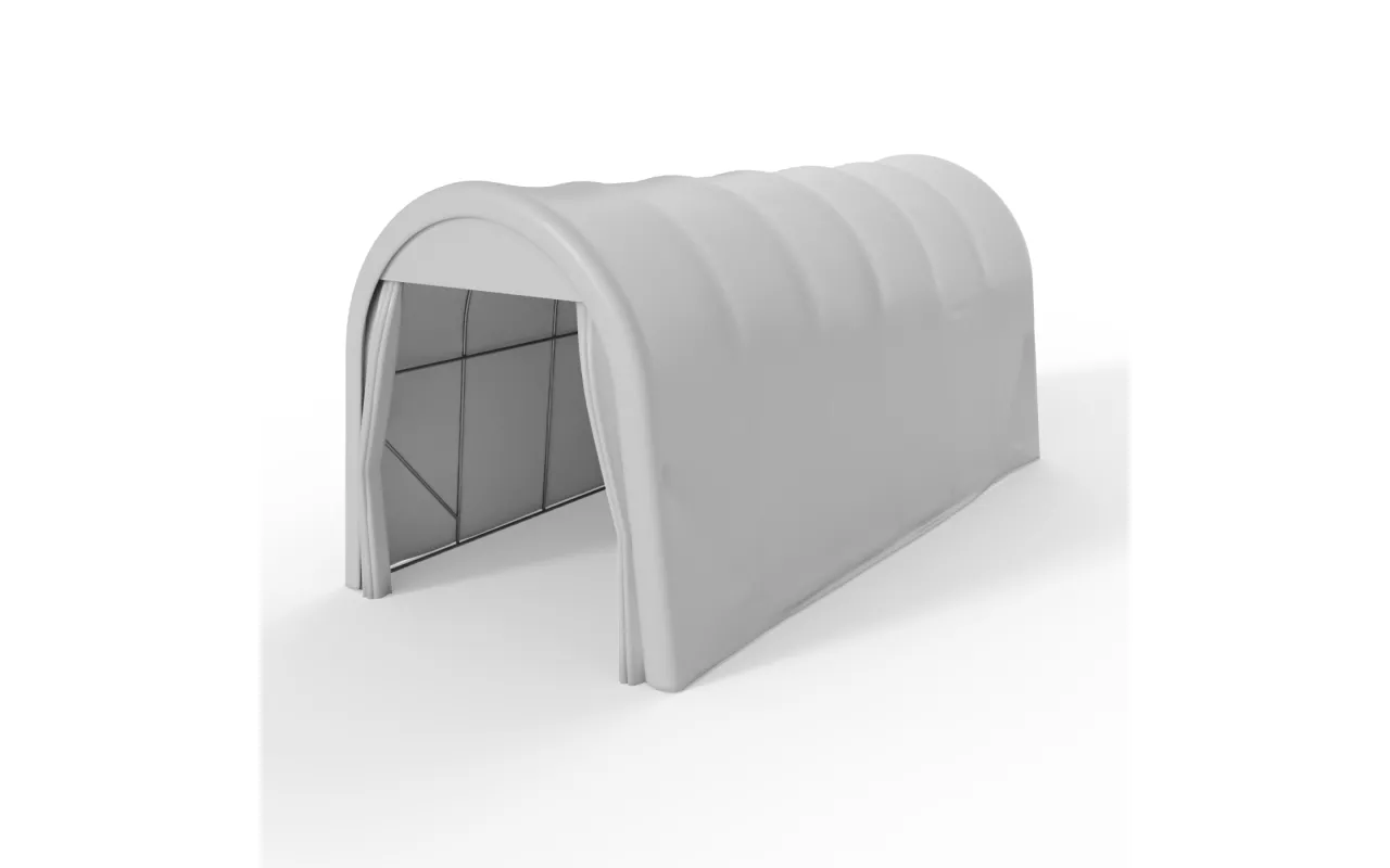Rundbogen-Garage Zelt 4,3x9,2 m ist eine praktische, vielseitige Überdachung für Fahrzeuge, Maschinen und Material. Als Garage Zelt bietet es dank stabiler Bogenkonstruktion und Abdeckung aus PVC zuverlässigen Schutz vor Regen, Schnee, Wind und UV-Strahlen. Der Aufbau ist unkompliziert, die Konstruktion kann bei Bedarf umgesetzt werden – ideal für wechselnde Einsatzorte in Betrieb, Hof oder Baustelle. Kontaktieren Sie uns für eine passende Konfiguration.