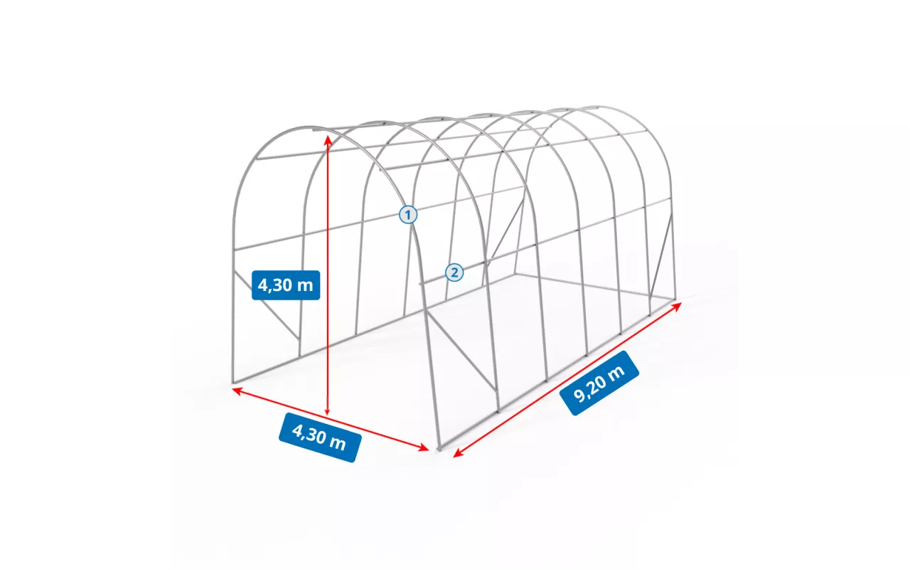 - Die Festigkeit der Struktur wurde durch die Verwendung von Rohren mit größerem Durchmesser erhöht, so dass die Stabilität auch unter schwierigen Wetterbedingungen gewährleistet ist.