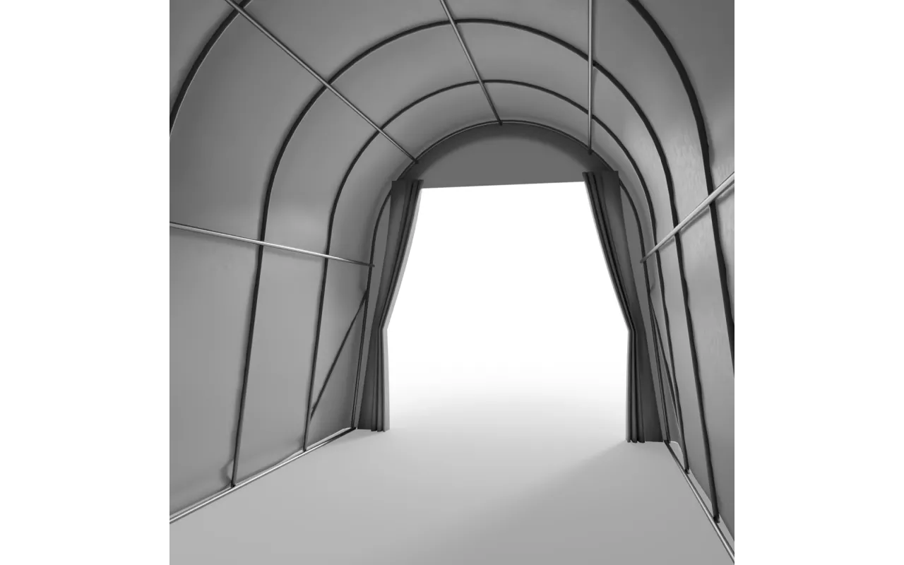 Die Struktur des Garagenzeltes zeichnet sich durch die Verwendung von Stützrohren und Verbindungsstücken mit vergrößertem Durchmesser aus, was die Festigkeitsparameter des gesamten Systems deutlich erhöht. Das Schlüsselelement der Struktur ist kaltgewalzter Stahl, der eine außergewöhnliche Widerstandsfähigkeit gegenüber statischen und dynamischen Belastungen bietet und das Risiko einer Verformung ausschließt.