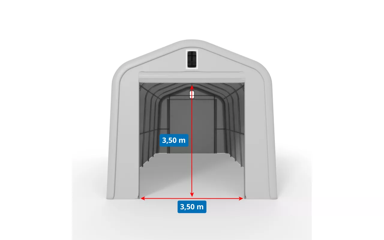 Die Struktur des Garagenzeltes zeichnet sich durch die Verwendung von Stützrohren und Verbindungsstücken mit vergrößertem Durchmesser aus, was die Festigkeitsparameter des gesamten Systems deutlich erhöht. Das Schlüsselelement der Struktur ist kaltgewalzter Stahl, der eine außergewöhnliche Widerstandsfähigkeit gegenüber statischen und dynamischen Belastungen bietet und das Risiko einer Verformung ausschließt.