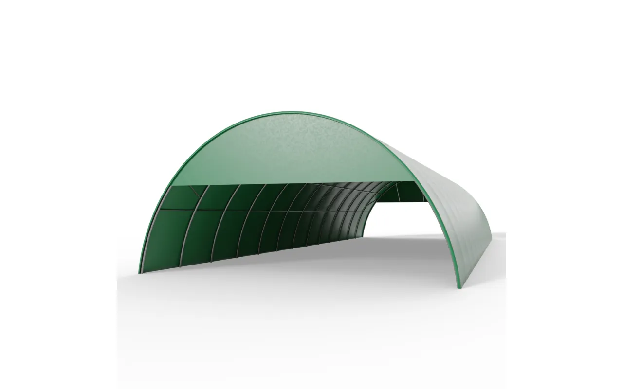Giebelverkleidung mit Gestell für Bogenhalle 12 m in grüner Ausführung PVC 750 g/m² ist eine praktische Lösung zur teilweisen Abdeckung einer Rundbogenhalle von vorne oder hinten. Anstelle einer vollständigen Wand schützt die Abdeckung den oberen Giebelbereich und bewahrt das Halleninnere vor Wind, Niederschlag und Staub. Dieses System eignet sich ideal, wenn Waren geschützt werden sollen, aber gleichzeitig eine freie Luftzirkulation oder ein schneller Zugang zum Inneren gewährleistet bleiben muss. Giebelverkleidung mit Gestell für Bogenhalle 12 m in grüner Ausführung PVC 750 g/m² erhöht die Funktionalität der Konstruktion, ohne ihre Flexibilität einzuschränken – besonders beim saisonalen Lagern von Ernten, Maschinen oder Baumaterialien.