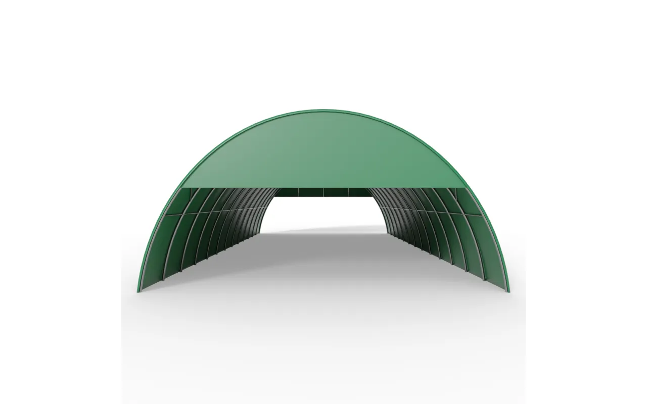 Giebelverkleidung mit Gestell für Bogenhalle 12 m in grüner Ausführung PVC 900 g/m² ist eine praktische Lösung zur teilweisen Abdeckung einer Rundbogenhalle von vorne oder hinten. Anstelle einer vollständigen Wand schützt die Abdeckung den oberen Giebelbereich und bewahrt das Halleninnere vor Wind, Niederschlag und Staub. Dieses System eignet sich ideal, wenn Waren geschützt werden sollen, aber gleichzeitig eine freie Luftzirkulation oder ein schneller Zugang zum Inneren gewährleistet bleiben muss. Giebelverkleidung mit Gestell für Bogenhalle 12 m in grüner Ausführung PVC 900 g/m² erhöht die Funktionalität der Konstruktion, ohne ihre Flexibilität einzuschränken – besonders beim saisonalen Lagern von Ernten, Maschinen oder Baumaterialien.