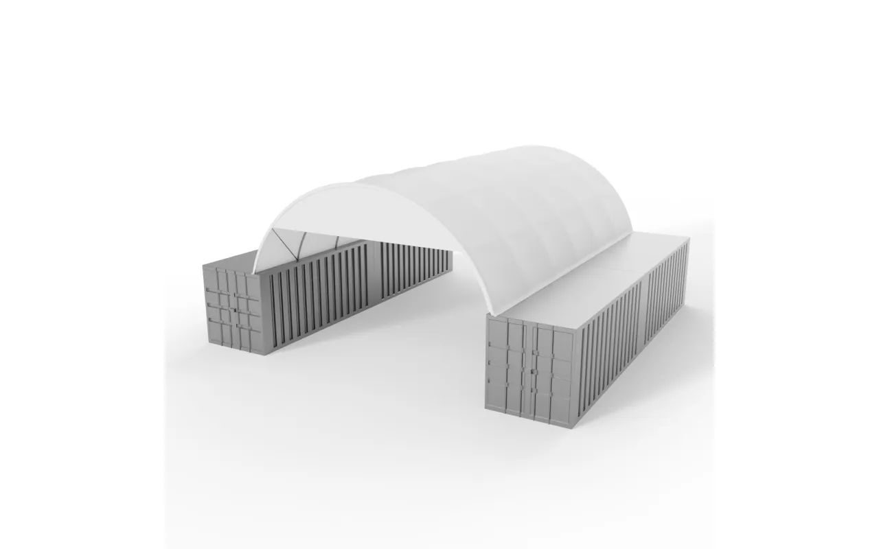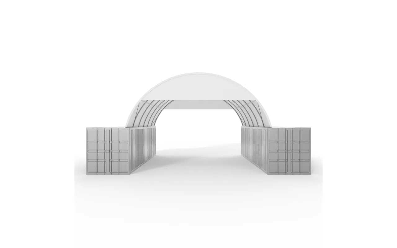 Die 8 m breite Verkleidung aus PVC 750 g/m² bietet eine partielle Abschirmung des überdachten Bereichs einer Containerkonstruktion. Sie reduziert seitlichen Winddruck und Niederschlagseintrag auf einer Hallenseite. Durch die Kompatibilität mit dem Bogensystem ist die Montage schnell und ohne Spezialwerkzeug möglich. Eine praxisnahe Lösung für Landwirtschaft und Industrie, um Lagerbedingungen unter der Überdachung verlässlich zu verbessern.
