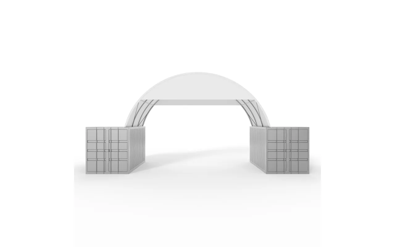 Giebelverkleidung (teilweise) mit 6 m Breite und 1 m Höhe – entwickelt zur partiellen Sicherung der Rundbogenkonstruktion gegen Wind und Niederschlag. Die Plane aus PVC 750 g/m² ist leicht und bietet einen soliden Basisschutz bei gleichzeitig guter Luftdurchlässigkeit. Montiert von der oberen Dachkante bis zur halben Bogenhöhe, stärkt sie zusätzlich den Giebelbereich des Lagertunnels.