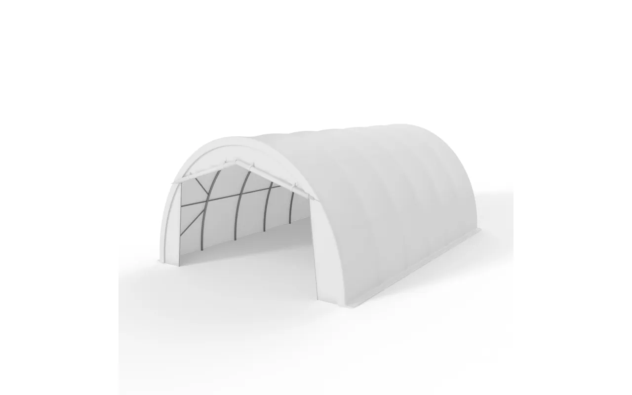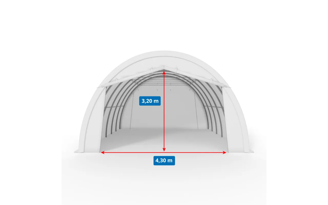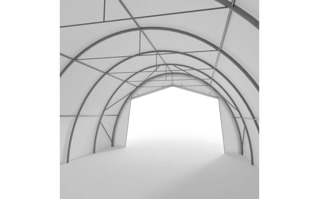 Dieses Modell eignet sich als kompakte Halle zur Lagerung von Geräten, Materialien und Ausrüstung, die geschützt und am Arbeitsplatz jederzeit verfügbar sein sollen. Die Konstruktion auf einem Stahlrahmen gewährleistet einen stabilen Betrieb, und die Bogenform erleichtert den Wasser- und Schneeablauf von der Plane. Die Plane PVC 900 g/m² schützt das Halleninnere vor Regen, Wind und UV-Strahlung, daher kann das Objekt als handliches Lager, technischer Nebenbereich oder als Schutz für regelmäßig im Unternehmen oder Betrieb eingesetzte Geräte dienen. Das ist eine Lösung für alle, die ihren Arbeitsbereich strukturieren und zusätzlichen Platz gewinnen möchten, ohne eine komplexe Bauinvestition umzusetzen.