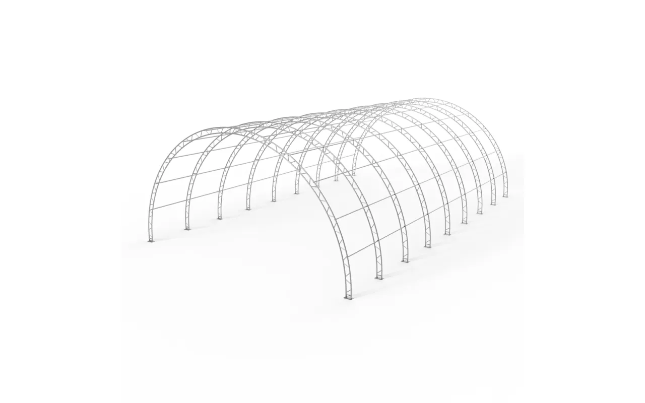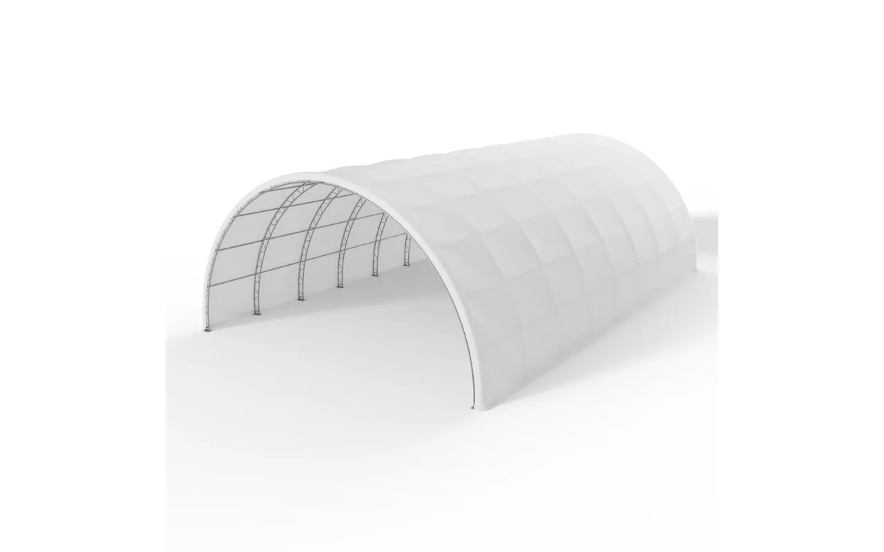 Rundbogenhalle 15,25x36,6 m PVC 900 g/m² wurde speziell für landwirtschaftliche Betriebe, Viehzucht sowie kleine und mittlere Unternehmen entwickelt, die zuverlässigen Lagerraum benötigen. Sie eignet sich ideal als ganzjähriger oder saisonaler Unterstand für Heu- und Strohballen, landwirtschaftliche Maschinen, Dünger oder Futtermittel. Ebenso ist sie eine hervorragende Lösung zur Lagerung von Ernten in Big-Bags, Gemüse, landwirtschaftlichen Erzeugnissen und Geräten, die vor Regen, Schnee oder Sonne geschützt werden müssen. Die bogenförmige Tunnelkonstruktion ermöglicht eine effiziente Raumnutzung, erlaubt die Durchfahrt großer Maschinen ohne das Öffnen von Toren und sorgt für eine natürliche Luftzirkulation. Dank der offenen Giebelkonstruktion und der vielfältigen Konfigurationsmöglichkeiten kann Rundbogenhalle 15,25x36,6 m PVC 900 g/m² viele Funktionen übernehmen und sich problemlos an die wechselnden Anforderungen des Betriebs anpassen.