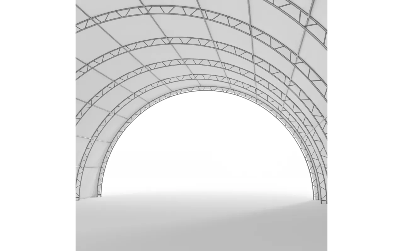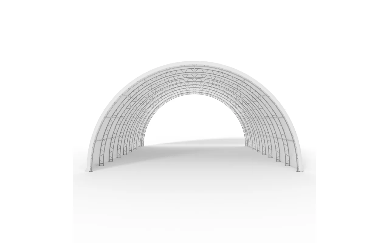Ausführung mit Plane PVC 900 g/m² – eine professionelle Lösung für intensive Nutzung das ganze Jahr über. Die Halle 15,25x36,6 m mit Zweipunkt-Fachwerkkonstruktion bietet außergewöhnliche Steifigkeit sowie hohe Beständigkeit gegen Wind- und Schneelasten. Ideal als Überdachung für Geräte, als Arbeitsbereich oder als Produktionsfläche. Der einfache Rückbau ermöglicht ein flexibles Flächenmanagement. Fordern Sie ein Angebot an.