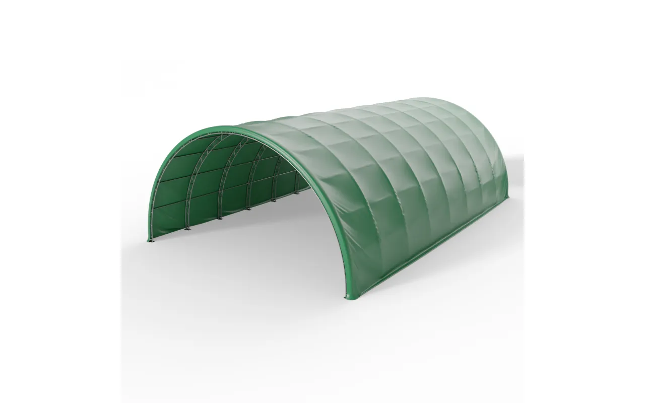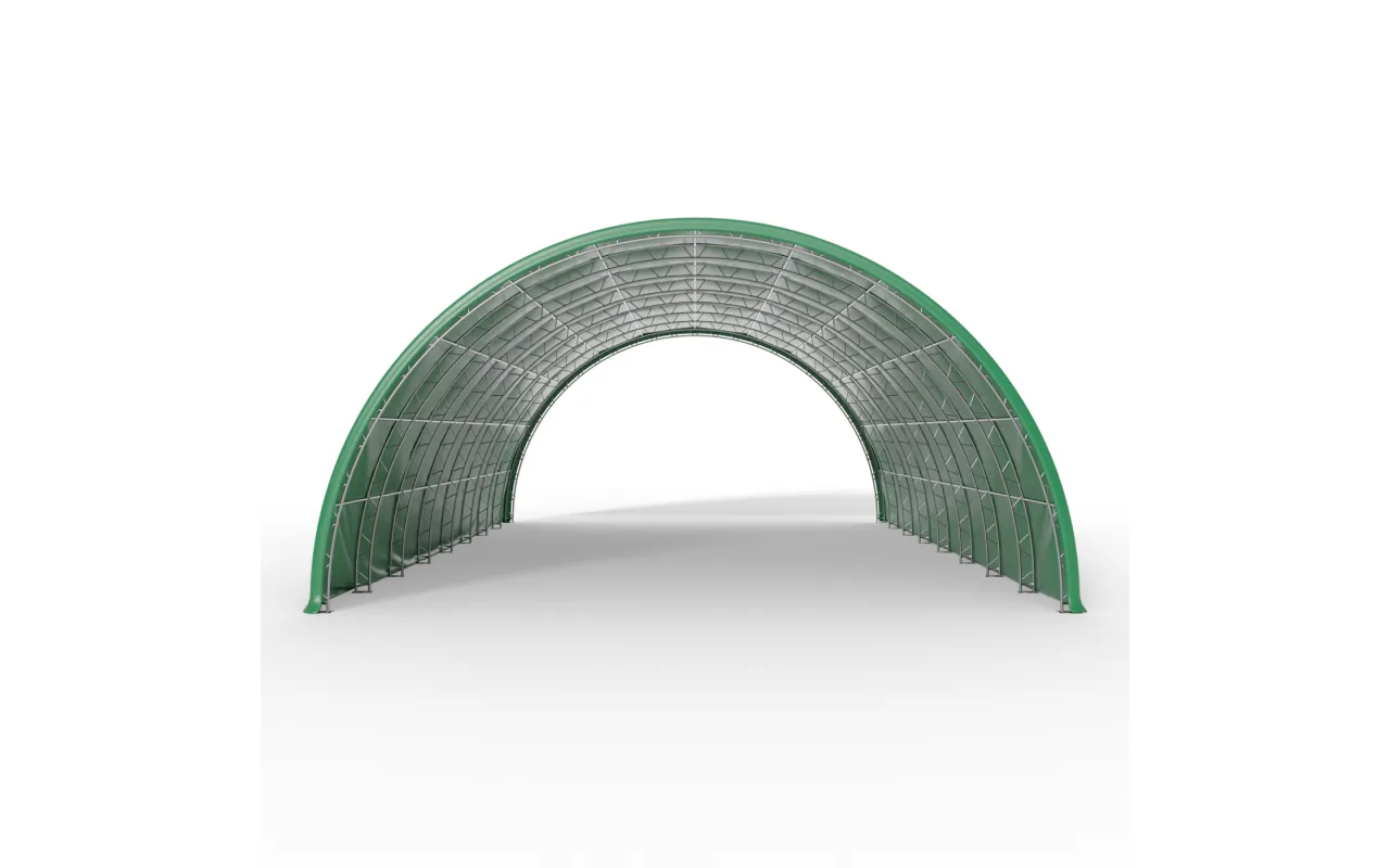 Rundbogenhalle 15,25x45,75 m PVC 900 g/m² in grüner Ausführung wurde speziell für landwirtschaftliche Betriebe, Viehzucht sowie kleine und mittlere Unternehmen entwickelt, die zuverlässigen Lagerraum benötigen. Sie eignet sich ideal als ganzjähriger oder saisonaler Unterstand für Heu- und Strohballen, landwirtschaftliche Maschinen, Dünger oder Futtermittel. Ebenso ist sie eine hervorragende Lösung zur Lagerung von Ernten in Big-Bags, Gemüse, landwirtschaftlichen Erzeugnissen und Geräten, die vor Regen, Schnee oder Sonne geschützt werden müssen. Die bogenförmige Tunnelkonstruktion ermöglicht eine effiziente Raumnutzung, erlaubt die Durchfahrt großer Maschinen ohne das Öffnen von Toren und sorgt für eine natürliche Luftzirkulation. Dank der offenen Giebelkonstruktion und der vielfältigen Konfigurationsmöglichkeiten kann Rundbogenhalle 15,25x45,75 m PVC 900 g/m² in grüner Ausführung viele Funktionen übernehmen und sich problemlos an die wechselnden Anforderungen des Betriebs anpassen.