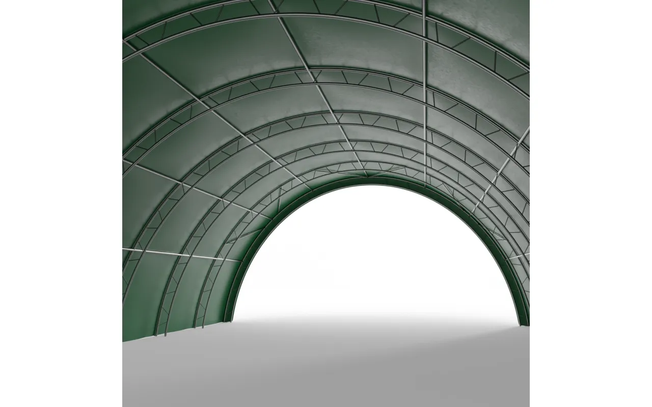 Verstärkte Rundbogenhalle 12,2x18 m PVC 750 g/m² in grüner Ausführung wurde speziell für landwirtschaftliche Betriebe, Viehzucht sowie kleine und mittlere Unternehmen entwickelt, die zuverlässigen Lagerraum benötigen. Sie eignet sich ideal als ganzjähriger oder saisonaler Unterstand für Heu- und Strohballen, landwirtschaftliche Maschinen, Dünger oder Futtermittel. Ebenso ist sie eine hervorragende Lösung zur Lagerung von Ernten in Big-Bags, Gemüse, landwirtschaftlichen Erzeugnissen und Geräten, die vor Regen, Schnee oder Sonne geschützt werden müssen. Die bogenförmige Tunnelkonstruktion ermöglicht eine effiziente Raumnutzung, erlaubt die Durchfahrt großer Maschinen ohne das Öffnen von Toren und sorgt für eine natürliche Luftzirkulation. Dank der offenen Giebelkonstruktion und der vielfältigen Konfigurationsmöglichkeiten kann Verstärkte Rundbogenhalle 12,2x18 m PVC 750 g/m² in grüner Ausführung viele Funktionen übernehmen und sich problemlos an die wechselnden Anforderungen des Betriebs anpassen.