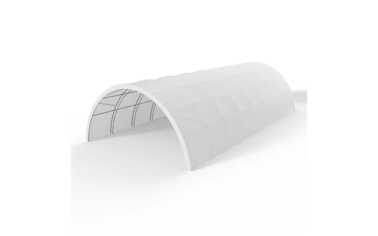 Verstärkte Rundbogenhalle 12,2x30 m PVC 900 g/m² wurde speziell für landwirtschaftliche Betriebe, Viehzucht sowie kleine und mittlere Unternehmen entwickelt, die zuverlässigen Lagerraum benötigen. Sie eignet sich ideal als ganzjähriger oder saisonaler Unterstand für Heu- und Strohballen, landwirtschaftliche Maschinen, Dünger oder Futtermittel. Ebenso ist sie eine hervorragende Lösung zur Lagerung von Ernten in Big-Bags, Gemüse, landwirtschaftlichen Erzeugnissen und Geräten, die vor Regen, Schnee oder Sonne geschützt werden müssen. Die bogenförmige Tunnelkonstruktion ermöglicht eine effiziente Raumnutzung, erlaubt die Durchfahrt großer Maschinen ohne das Öffnen von Toren und sorgt für eine natürliche Luftzirkulation. Dank der offenen Giebelkonstruktion und der vielfältigen Konfigurationsmöglichkeiten kann Verstärkte Rundbogenhalle 12,2x30 m PVC 900 g/m² viele Funktionen übernehmen und sich problemlos an die wechselnden Anforderungen des Betriebs anpassen.
