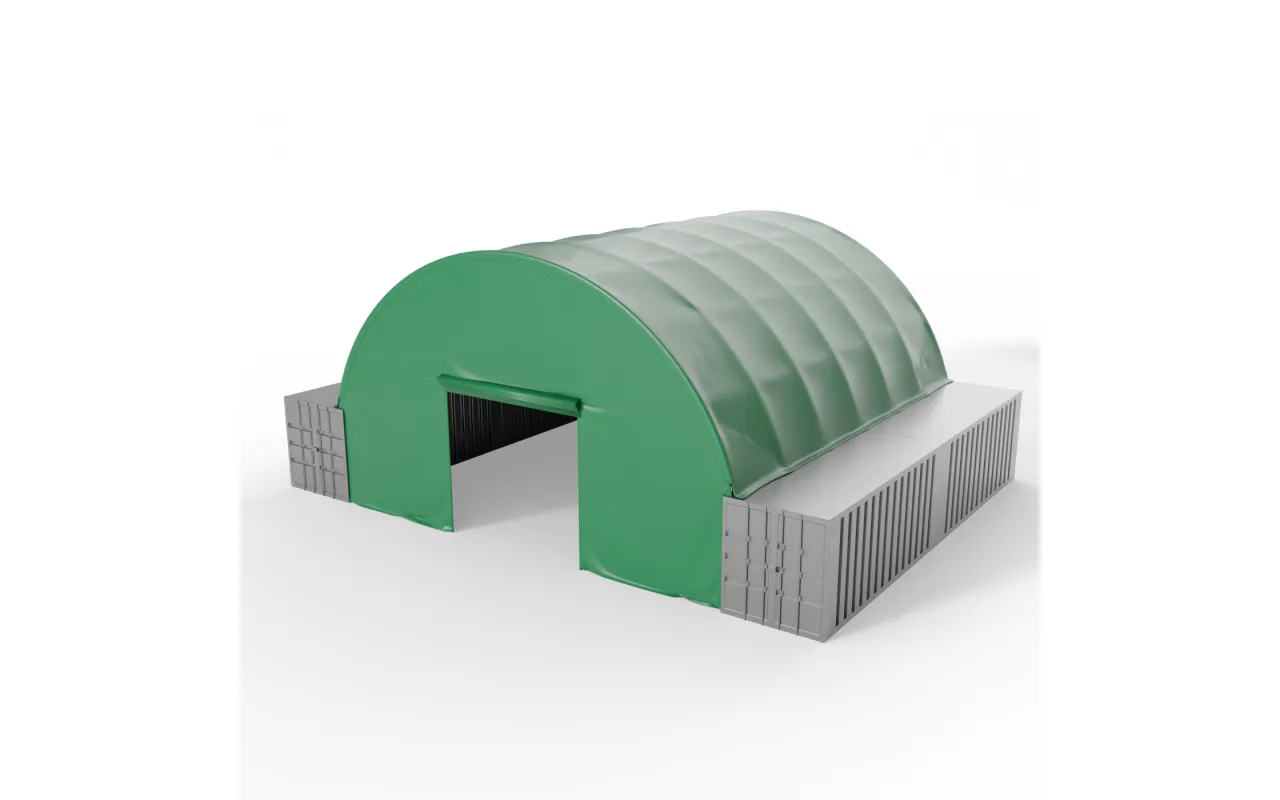 Frontwand für Container Überdachung in grüner Ausführung 6 m PVC 900 g/m² wird als Komplettlösung geliefert – mit vormontiertem Stahlrahmen und passender Planenbespannung, abgestimmt auf die jeweilige Tunnelbreite (z. B. 10 m, 12 m). Die Montage kann je nach gewünschter Funktion und Arbeitsorganisation vor Ort sowohl an der Vorder- als auch an der Rückseite der Konstruktion erfolgen. Das Rolltor in den Frontwänden ermöglicht die sichere Einfahrt von Maschinen und den Materialtransport, während die Rückwände einen dauerhaften Abschluss des Lagerbereichs bilden. Unabhängig von der Variante bietet Frontwand für Container Überdachung in grüner Ausführung 6 m PVC 900 g/m² hohen Nutzungskomfort und zuverlässigen Schutz. Dank ihrer Modularität lässt sich die Konstruktion flexibel an die sich wandelnden Anforderungen in Logistik, Bauwesen, Lagerhaltung oder Landwirtschaft anpassen.