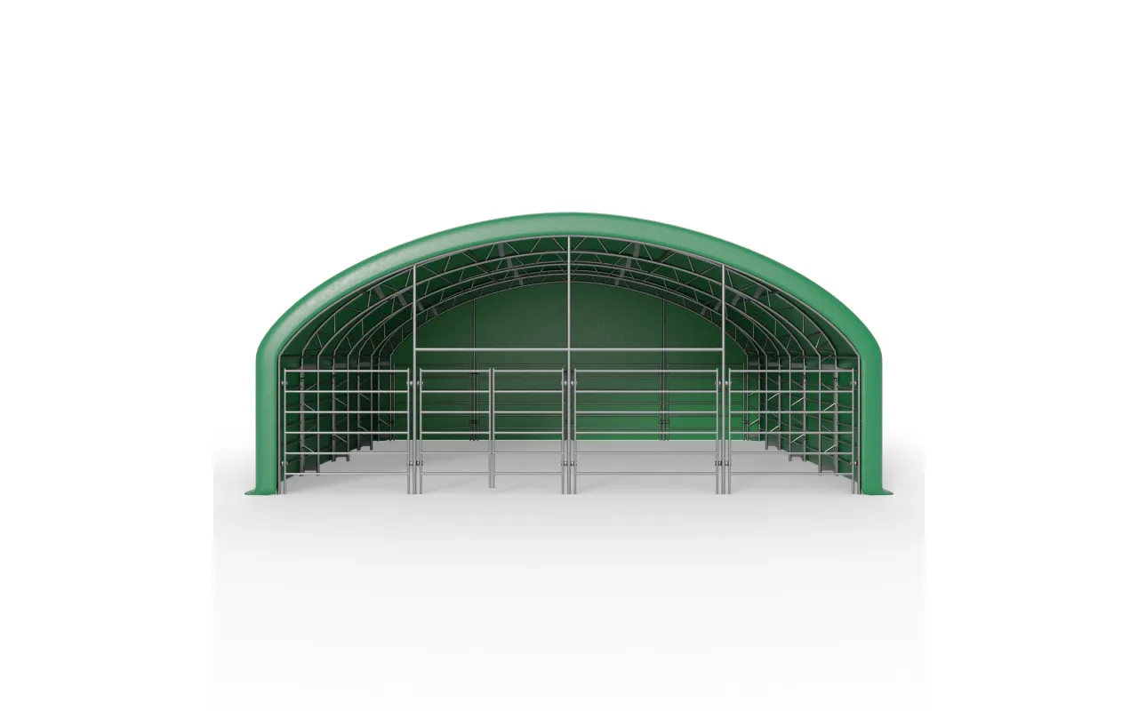 Weidezelt 10x10 m ist eine zuverlässige Zeltlösung für optimale Haltungsbedingungen und Sicherheit Ihrer Tiere. Die doppelte Fachwerkkonstruktion erhöht Stabilität und Reserven im täglichen Betrieb – ideal für landwirtschaftliche Betriebe, Zuchtbetriebe und private Anwesen. Die Plane aus PVC mit einer Grammatur von 750 g/m² schützt effektiv vor Regen, Wind und intensiver Sonne. Feuerverzinkte Stahlelemente erhöhen die Korrosionsbeständigkeit und Lebensdauer. Schnell montier- und demontierbar, flexibel für Rinder, Schafe, Ziegen, Pferde, Alpakas oder Geflügel. Kontaktieren Sie uns für ein passendes Angebot.