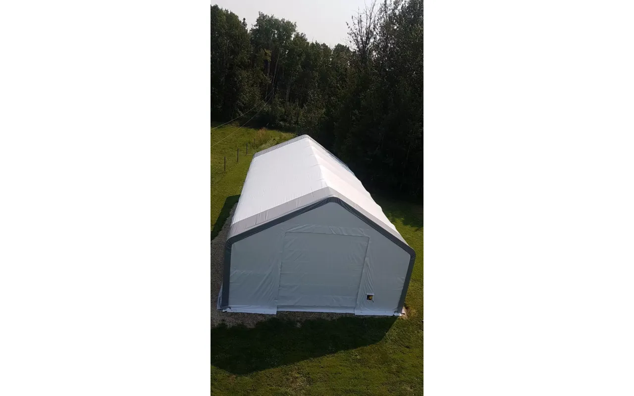 Die Ausführung mit Satteldach mit senkrechten, hohen Seitenwänden ermöglicht eine effiziente Lagerorganisation bis an die Seitenwände. Die Zelthalle mit Satteldach 9,15x24,4 m aus PVC mit einer Grammatur von 900 g ist auf hohe Wetterbeständigkeit und ganzjährigen Betrieb ausgelegt. Die steile Dachkonstruktion führt Schnee und Regen zuverlässig ab und schützt vor Überlastung. Durch schnelle Montage eignet sie sich für dynamische Standort- und Kapazitätsanforderungen. Kontaktieren Sie uns – wir helfen bei der Dimensionierung.