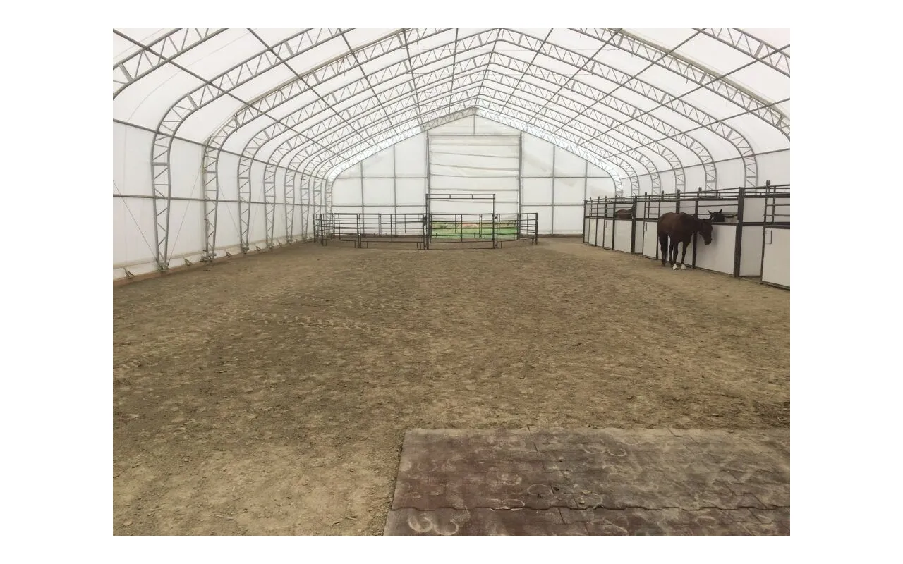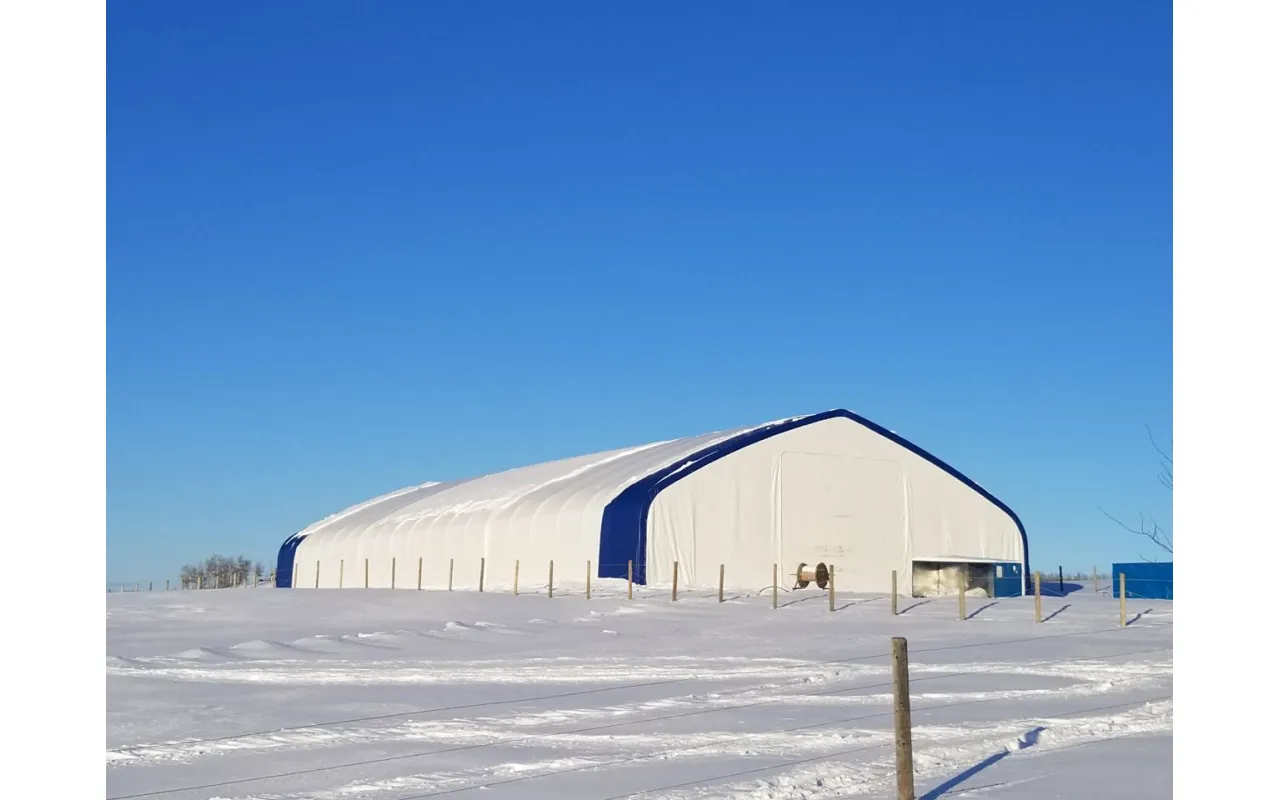 Die Wandkonstruktion der Zelthalle mit Satteldach mit senkrechten, hohen Seitenwänden ermöglicht eine effiziente Nutzung der Lagerfläche entlang der Seitenwände. Zelthalle mit Satteldach 18,3x24,4 m ist eine vielseitige Lösung für Industriebranche, Landwirtschaft und Lagerwirtschaft. Die steile Dachkonstruktion aus PVC mit einer Grammatur von 900 g/m² unterstützt den sicheren Schneeabrutsch und den Wasserablauf und schützt vor Überlastung durch extreme Witterungsbedingungen. Als Schnellmontage-Lösung lässt sich die Halle rasch installieren und bei Bedarf umorganisieren. Ideal als Lagerzelt – kontaktieren Sie uns für die passende Spezifikation.