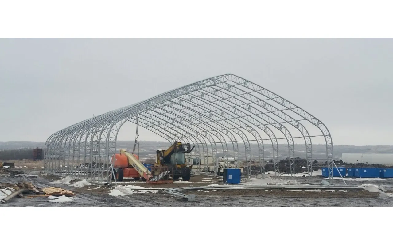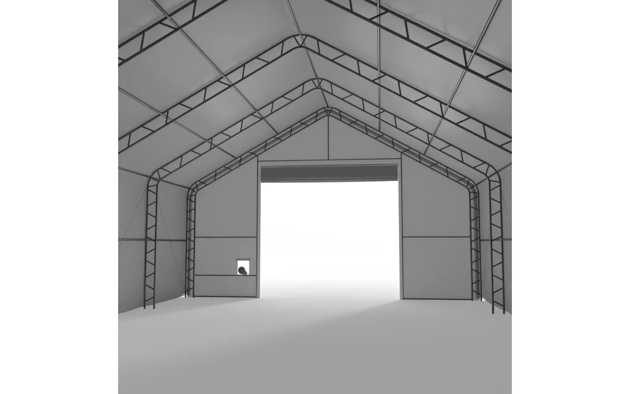 Die Wandkonstruktion der Zelthalle mit Satteldach mit senkrechten, hohen Seitenwänden ermöglicht eine effiziente Nutzung der Lagerfläche entlang der Seitenwände. Zelthalle mit Satteldach 18,3x45,75 m ist eine vielseitige Lösung für Industriebranche, Landwirtschaft und Lagerwirtschaft. Die steile Dachkonstruktion unterstützt den zuverlässigen Schneeabrutsch und Wasserablauf und schützt vor Überlastung durch extreme Witterungsbedingungen. Häufig als Schnellmontage-Zelt genutzt: schnelle Umsetzung und flexible Anpassung an wechselnde Kapazitäten. Ideal als Lagerzelt – fordern Sie eine Konfiguration für Ihren Standort an.